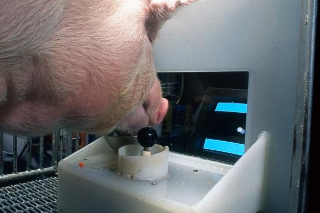 In a series of experiments designed to test their cognitive abilities, pigs proved they are far from simple farm animals by successfully using a joystick to manipulate a cursor on a screen. Researchers required the pigs to move the cursor to hit specific target walls. Not only did the pigs understand the concept of the joystick controlling the screen movements, but they were also shown to perform the task more accurately than random chance would allow. The tests demonstrated a complex link between their own movements and an external object’s behavior, highlighting their capacity for abstract thought and problem-solving at a level previously only attributed to primates.