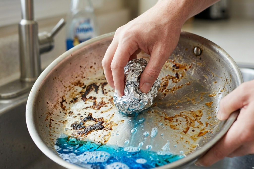 While most of us use aluminum foil to cover leftovers or line baking sheets, a crumpled ball of this metallic paper is a powerhouse in the kitchen. If you have a glass casserole dish or a stainless steel pan with burnt-on food, the foil acts as a heavy-duty scrubber that won’t rust like a traditional steel wool pad. You simply tear off a small piece, ball it up, and use it with a bit of dish soap to gently scrape away the grime. This technique is highly effective at restoring the shine to your cookware without requiring a trip to the store for new supplies.