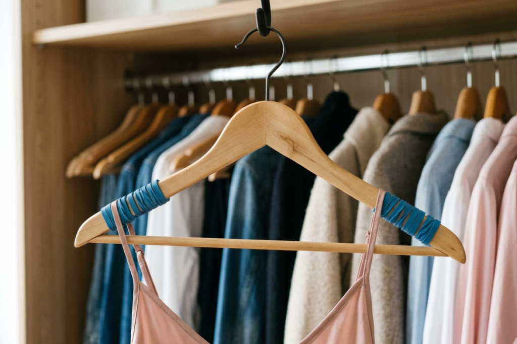 These elastic loops are also perfect for organizing a cluttered closet where silky dresses or wide-neck shirts constantly slip off their hangers. You can wrap a rubber band around each end of a plastic or wooden hanger to create a non-slip surface that keeps your wardrobe securely in place. If you are working on a home painting project, try stretching a large band vertically around an open paint can so that it crosses over the middle of the opening. This gives you a perfect edge to wipe your brush, resulting in fewer drips and a much cleaner rim for sealing the lid.