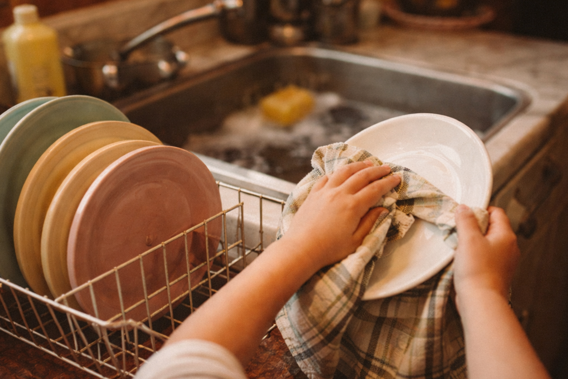 While many American homes in the 1970s began to see the introduction of the automatic dishwasher, they were often temperamental or seen as “wasteful” for small loads, meaning children were the primary dish dryers. One child would wash the plates in a sink full of soapy bubbles while the other stood by with a checked tea towel, drying each item and putting it away in the proper cupboard. This was a marathon task after a large family dinner, and it was often the time when siblings did their best bonding, or had their biggest arguments, over the suds. The rule was simple: the kitchen wasn’t clean until every pot was dry and every towel was hung up to dry.