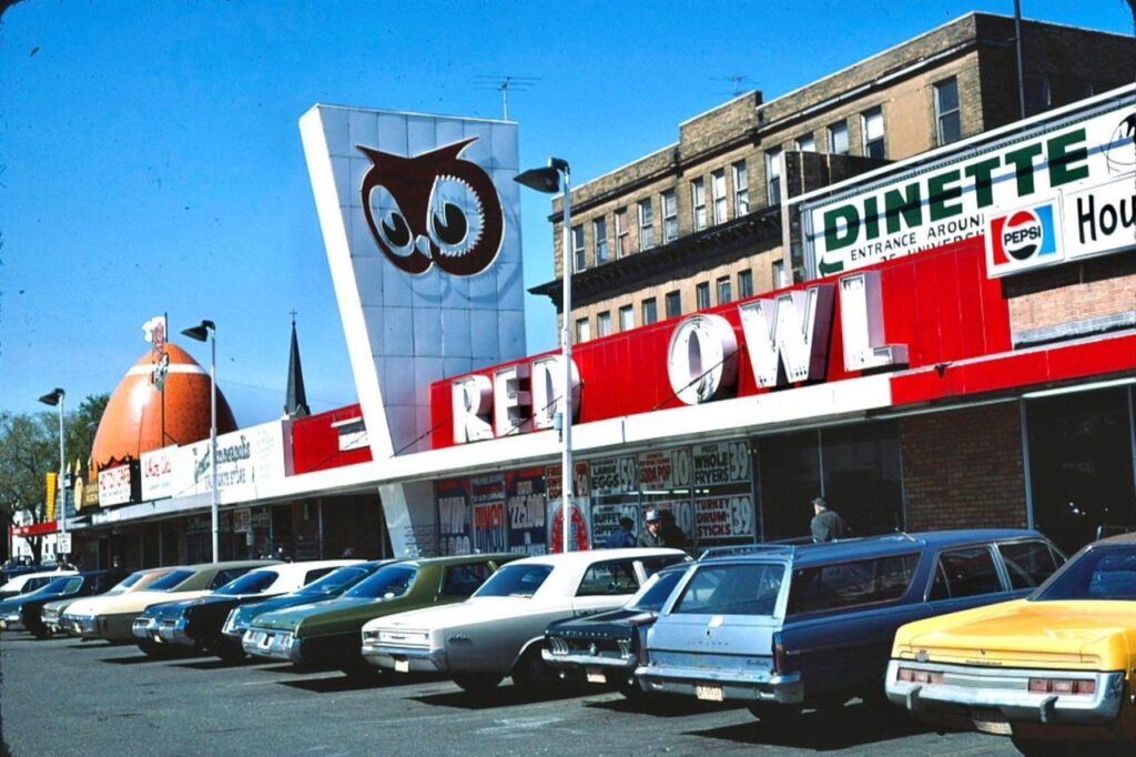 Recognizable by its wide-eyed red owl logo, this regional grocery chain was a cornerstone of the Midwest, operating mainly across Minnesota, Wisconsin, and the Dakotas for much of the 20th century. Red Owl was known for its exceptional local service and strong meat counters, cultivating a loyal customer base, especially in smaller towns. Like many smaller chains, it faced increasing pressure from larger, national competitors entering its territory and eventually succumbed to the economic pressures of consolidation. By the late 1980s, the Red Owl brand was largely sold off and dissolved, its locations either closed or rebranded by acquiring companies, essentially ending its quiet chapter in grocery history.