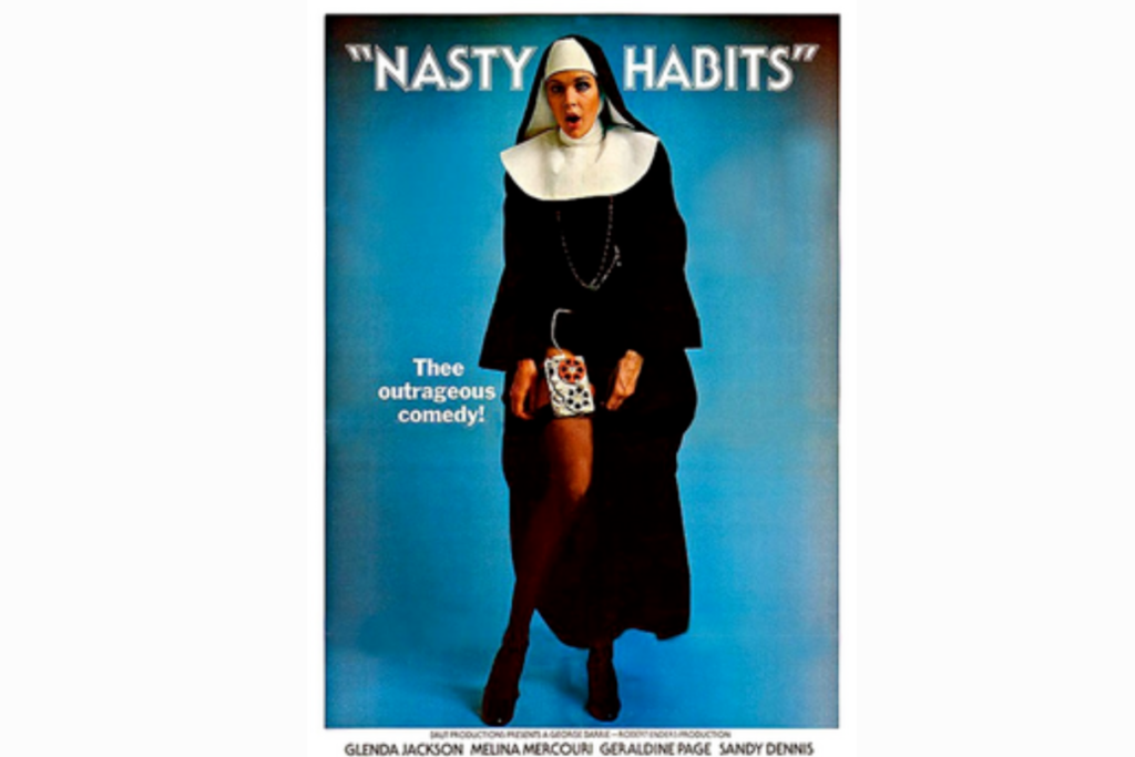 Nasty Habits is probably the most unique entry on this list, offering a sharp political satire set in a place you’d least expect: a London convent. Released on May 12, 1977, the film is a thinly veiled parody of the Watergate scandal that had rocked the United States just a few years earlier. Instead of politicians in the White House, we see a group of ambitious nuns, led by the formidable Glenda Jackson, using surveillance and dirty tricks to win an internal election.