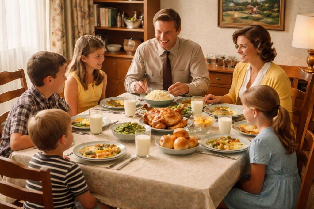 Families once treated shared dinner time as a fixed daily appointment rather than a flexible option. Meals were scheduled around work shifts, school hours, and chores, ensuring everyone gathered at the table at the same time. This rule encouraged consistent eating habits, reduced food waste, and made meal preparation more efficient. It also created a daily opportunity for conversation, discipline, and emotional check-ins. Research later confirmed what families already knew: regular shared meals are linked to better nutrition, improved communication, and stronger family bonds. Without apps or calendars, this rule naturally synchronized busy households.