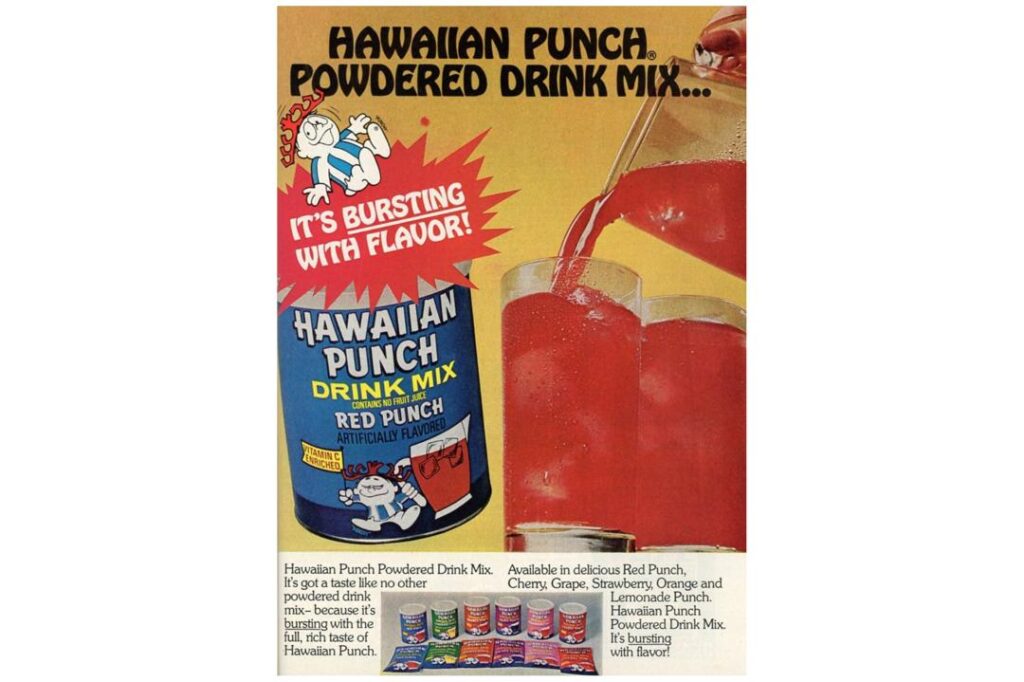 ​Hawaiian Punch was the heavy hitter of the afternoon snack world but it frequently made its way to the breakfast table because its “Fruit Juicy Red” flavor was simply too iconic to ignore. Originally starting as a cocktail mixer in the 1930s, it evolved into the ultimate childhood beverage thanks to the mischievous “Punchy” character who asked everyone if they’d like a nice Hawaiian Punch before delivering a comedic blow. We remember the massive metal cans that required a triangular church-key opener to punch two holes in the top; one for pouring and one for airflow. The liquid inside was a deep, staining red that seemed to defy the laws of natural coloration and it possessed a tropical sweetness that was both refreshing and incredibly heavy on the sugar.