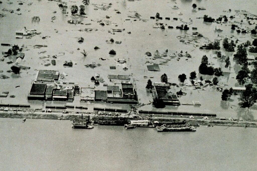 The Great Mississippi Flood of 1927 was one of the most destructive river floods in U.S. history. Heavy rainfall caused levees to fail, flooding vast areas across several states. Hundreds of thousands were displaced, and entire communities were destroyed. The disaster exposed weaknesses in flood control systems and uneven government response. In response, federal authorities expanded river management efforts, leading to large-scale dam and levee construction. The flood reshaped environmental policy, infrastructure planning, and the federal government’s role in disaster response.