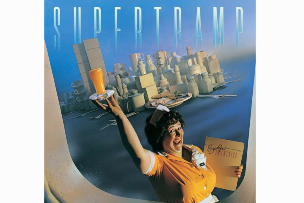 ​Supertramp took a satirical and playful approach to the American Dream for their 1979 release with a cover that turned the New York skyline into a diner breakfast. Designed by Mike Doud and Mick Haggerty, the image features an actress named Kate Murtagh dressed as a waitress who is posing as the Statue of Liberty while holding a glass of orange juice. Behind her, the skyscrapers of Manhattan are recreated using piles of boxes and kitchen utensils while the harbour is represented by a blue tabletop. This clever use of forced perspective and everyday objects created a surreal and humorous image that reflected the band’s move toward a more commercial and upbeat sound.
