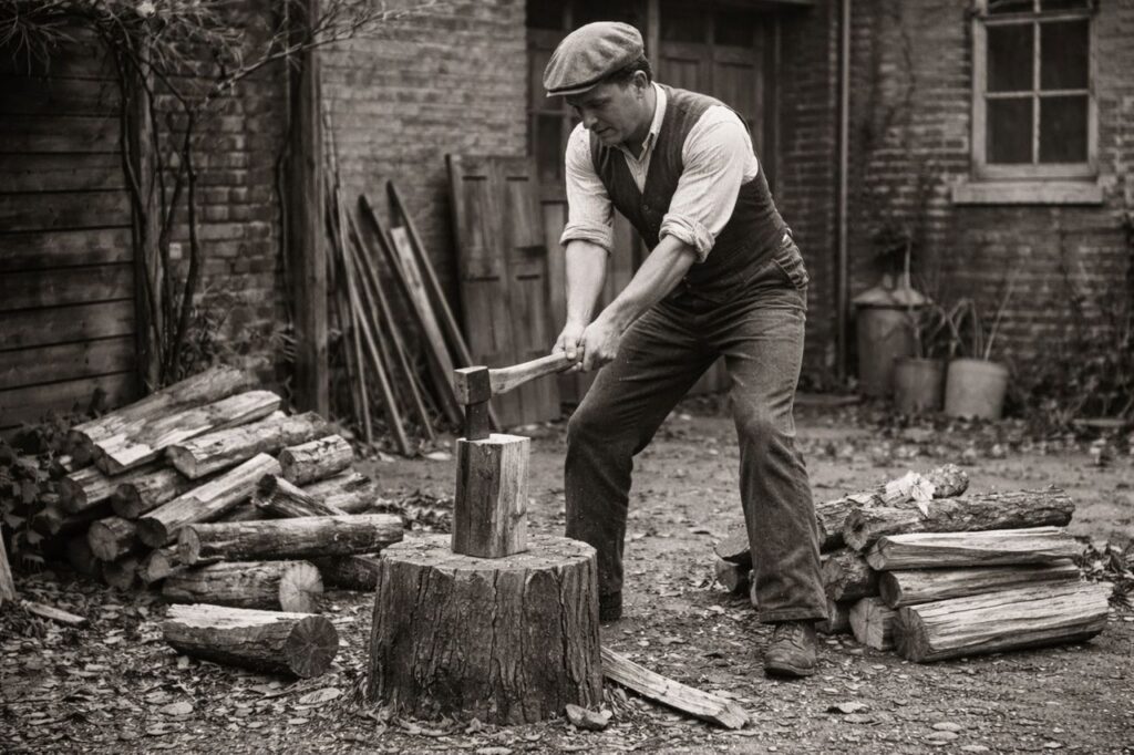 For centuries, keeping an American home warm during a harsh winter was a test of physical endurance. Before oil and gas furnaces became common in the 1940s, a typical household might burn through several cords of wood in a single season. This meant that “chopping wood” wasn’t a one-time event; it was a daily grind. Every morning and evening, someone had to head out to the woodpile with an axe to split logs into smaller “kindling” and “fuel wood” that would fit into the kitchen stove. It was an exhausting workout that required steady aim and significant muscle power.