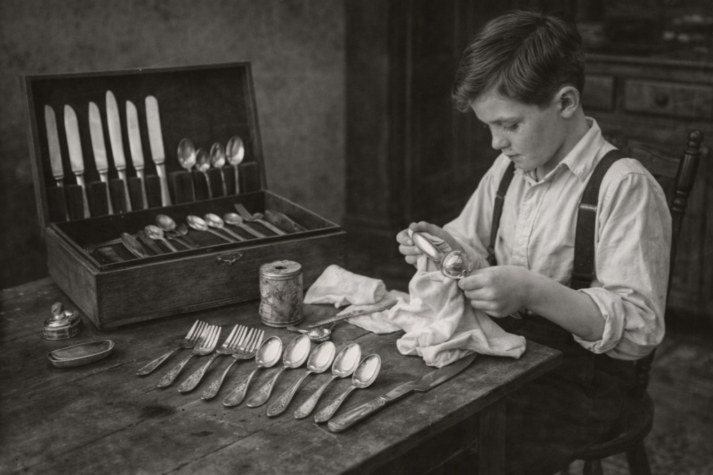In the mid-20th century, a set of “fine silver” was a mandatory wedding gift for almost every American couple. However, owning silver came with a hidden tax: hours of tedious labor. Because silver reacts with sulfur in the air, it naturally develops a dark, crusty tarnish that looks like black soot. To keep the forks and spoons presentable for Sunday dinner or holiday guests, they had to be polished. This involved applying a gritty, smelly chemical paste to every individual piece of cutlery, rubbing it in, and then buffing it off with a soft cloth until the metal gleamed.