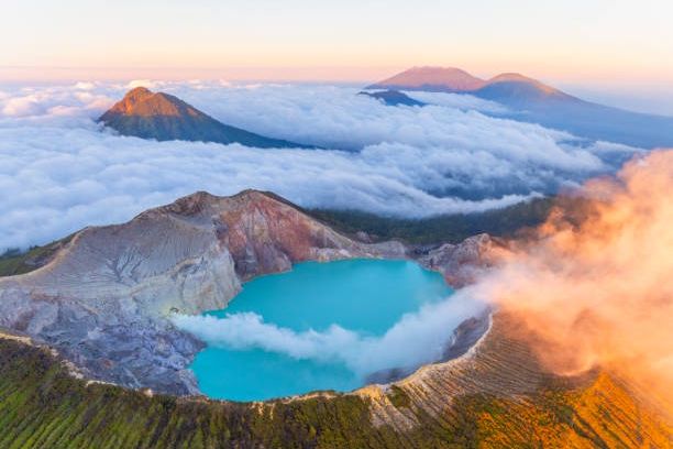 Deep in East Java, Indonesia, Kawah Ijen is a volcano that seems to defy reality. By day, it’s home to the world’s largest acidic crater lake, glowing turquoise from dissolved minerals. By night, the same volcano bursts into ghostly blue flames. The eerie light is caused by sulfuric gases escaping cracks and igniting when exposed to air. These burning gases create electric-blue streams that appear to drip down the crater walls. Miners still work here, extracting sulfur under these glowing plumes, a surreal and dangerous sight. The combination of fire and water, acid and beauty, makes Kawah Ijen one of Earth’s most visually impossible landscapes, a place that looks straight out of science fiction yet is very much real.