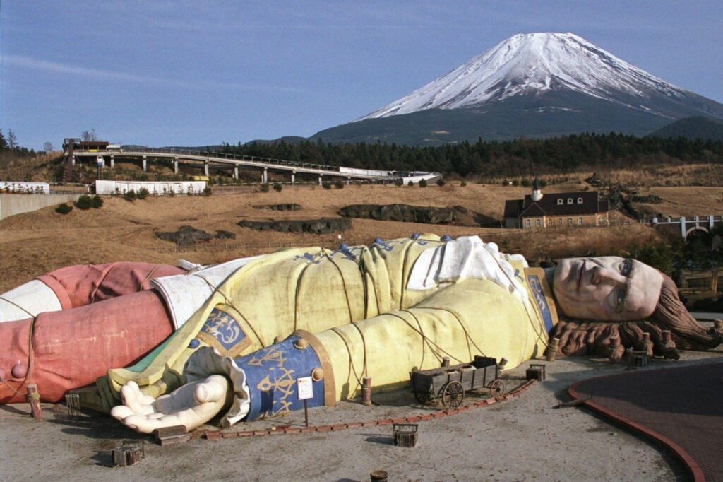 Gulliver’s Kingdom was a highly unusual theme park that opened in 1997 near the base of Mount Fuji. Based on the 18th-century novel Gulliver’s Travels, its centerpiece was a massive, 147-foot-long statue of Lemuel Gulliver tied to the ground by the Lilliputians. Despite its artistic ambition and stunning mountain backdrop, the park was a total failure. It closed just four years later in 2001. Many believe the park failed because of its location; it was built right next to the forest known as “The Sea of Trees” and near the former headquarters of a notorious cult, which made families uncomfortable.