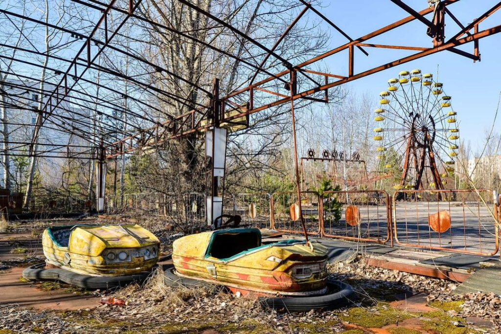 Today, the yellow Ferris wheel of Pripyat is one of the most recognizable symbols of the Chernobyl Exclusion Zone. It stands as a haunting skeletal structure in a city where time has been frozen since the mid-1980s. Because the area remains radioactive, the park hasn’t been looted or demolished; it simply sits there, surrendering to the elements. For visitors on authorized tours, the sight of the motionless bumper cars and the rusted wheel serves as a visceral reminder of how quickly a thriving community can be erased, leaving behind only the hollow shells of intended joy.