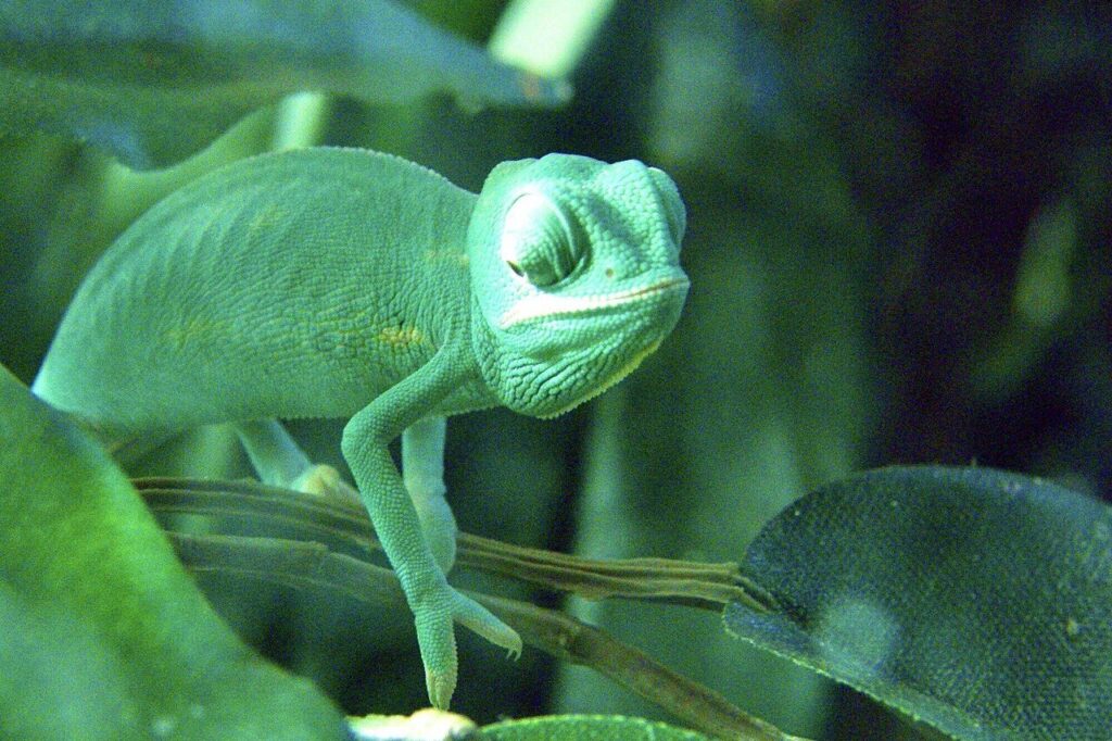 Chameleons are known for changing color, but recent research explains the mechanism more clearly. Scientists discovered that color shifts are controlled by nanocrystals in the skin that reflect light differently when cells expand or contract. This allows rapid changes linked to temperature, mood, or social signaling rather than simple camouflage. Chameleons also have independently moving eyes, giving them near 360-degree vision, and a tongue that can extend faster than the blink of an eye. These combined abilities make them a frequent subject in studies of biomechanics and optical biology.