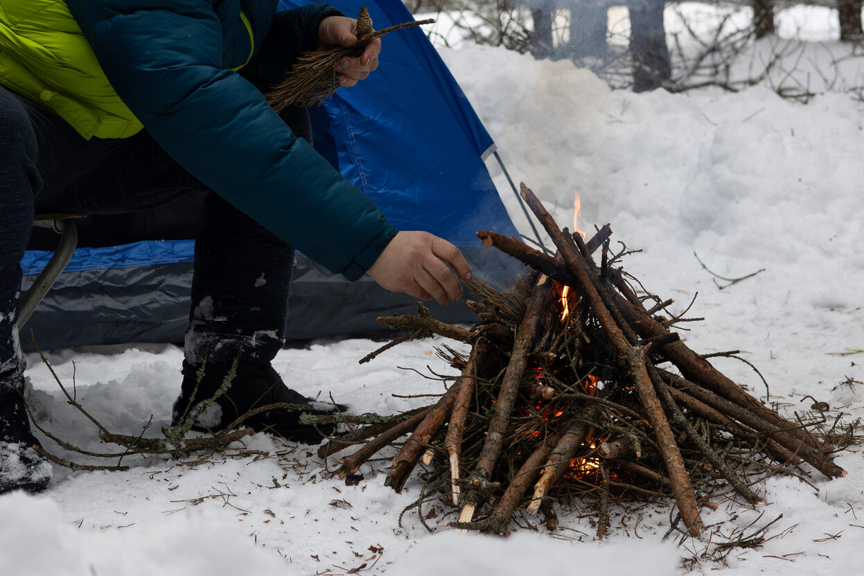 A fire does more than provide heat, it’s also a lifeline for visibility and rescue. On Alone: Frozen, contestants often use dry leaves, birch bark, and small sticks to spark flames quickly before adding larger logs. A fire not only helps maintain body temperature but also boosts morale and signals location to rescuers, especially at night. For those stranded outdoors, smoke by day and flame by night can be seen from long distances. Even in modern emergencies, carrying a lighter, matches, or a fire starter in your gear is a small step that pays off enormously if you’re ever caught outdoors in dangerous weather.