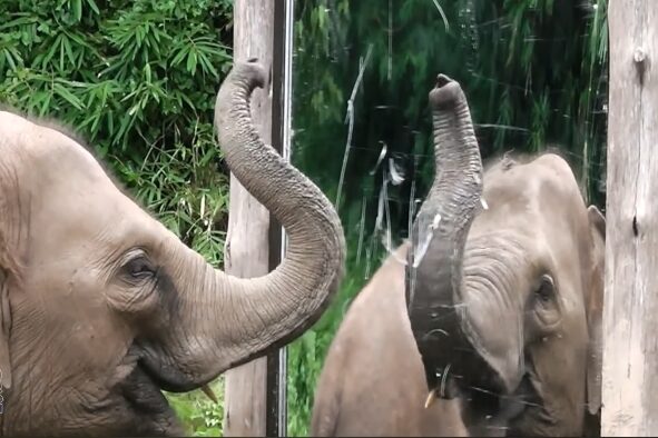 Elephants approach Mirrors with patience that feels deeply intentional. When they notice their own image, they often slow down, extend their trunks, and explore the screen gently. Some shift positions or touch parts of their bodies as if confirming what they see. There is no rush, no alarm, just quiet investigation. Watching an elephant respond this way feels grounding, like witnessing thought unfold in real time. Their reactions suggest understanding rather than confusion, and they move on only after satisfying their curiosity. It reminds you that intelligence can be calm, careful, and deeply observant.