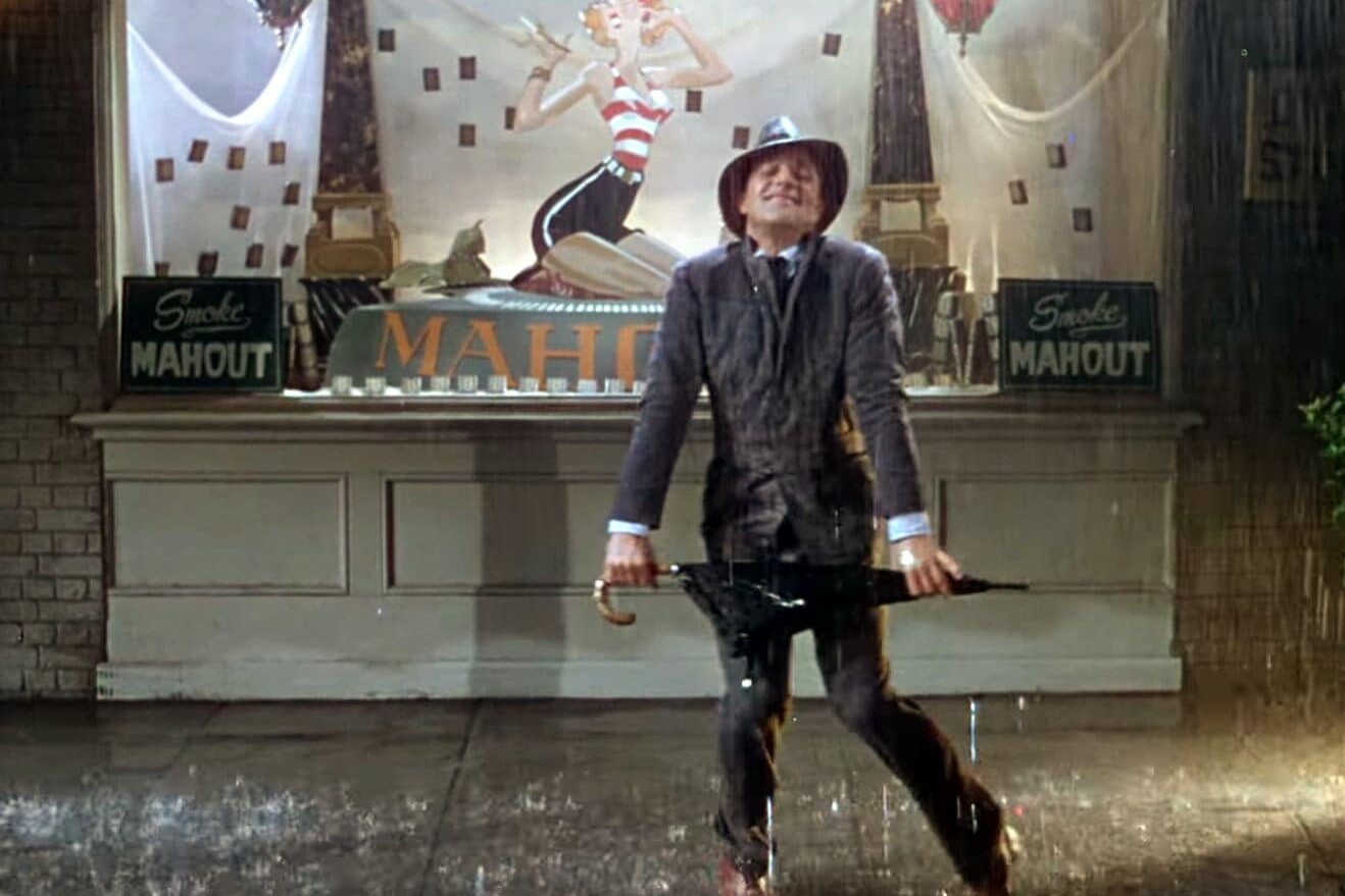 Gene Kelly Dancing Through Rain On A Slippery Street Set