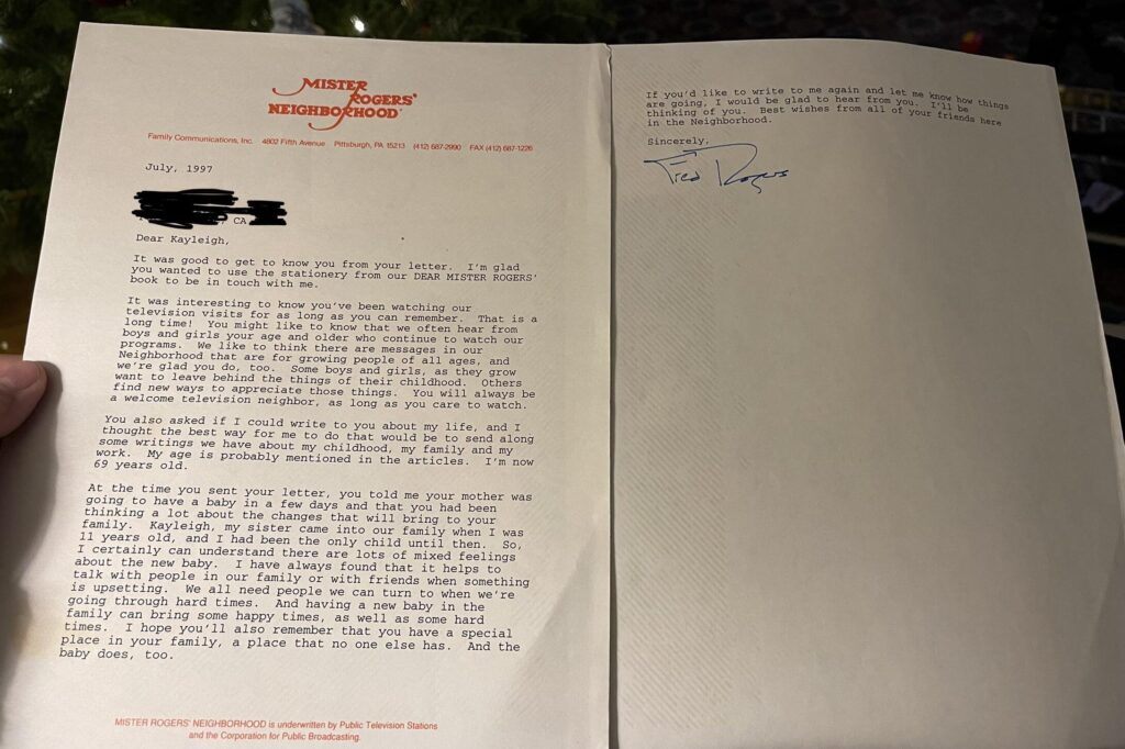 Whenever Mister Rogers met a child, whether in his studio, at a public event, or even on the street, he often followed up with a personal letter. These weren’t form notes; they were warm, thoughtful messages that reflected the conversation he’d had with the child. Parents later shared that their families treasured these letters for decades, often keeping them framed or tucked away like heirlooms. It was a small act that made a huge impact, showing that Rogers didn’t just perform kindness on television. He took the time to make children feel truly seen, carrying their stories with him long after the initial meeting.
