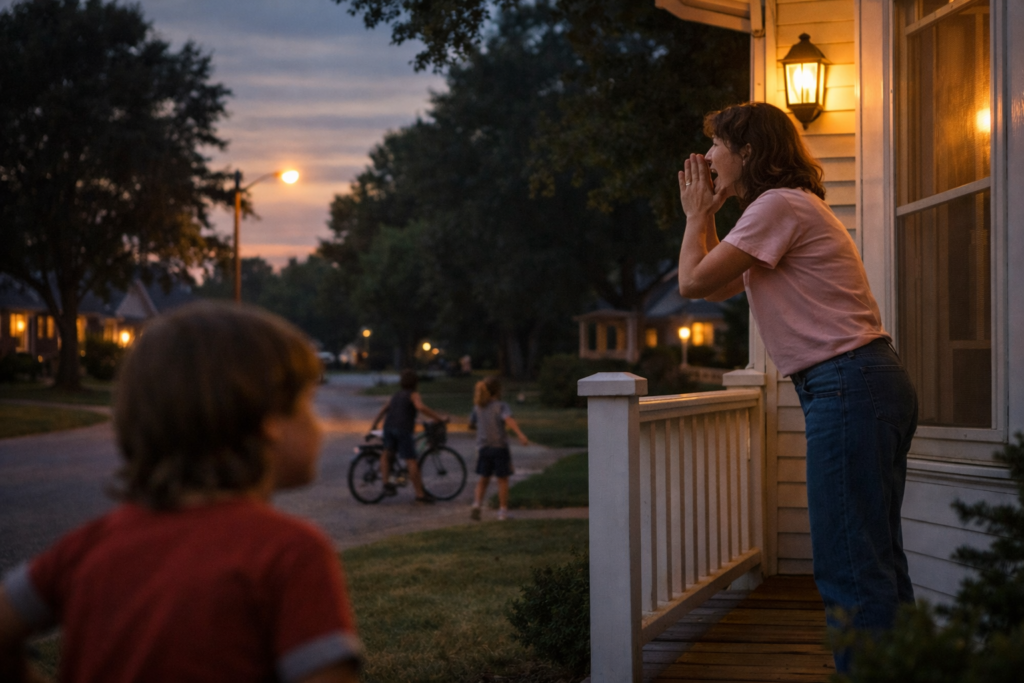 As the evening deepened, voices would start to carry across the neighborhood. One parent calling from a porch, another from a doorway, each voice familiar to the kids it belonged to. You could hear names echoing faintly, sometimes yours, sometimes someone else’s, blending into the soft noise of the evening.